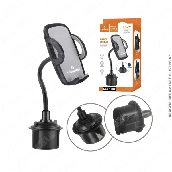 | Nome | Suporte Veicular p/ Celular e Gps Universal Porta Copo (LEY-1667) |