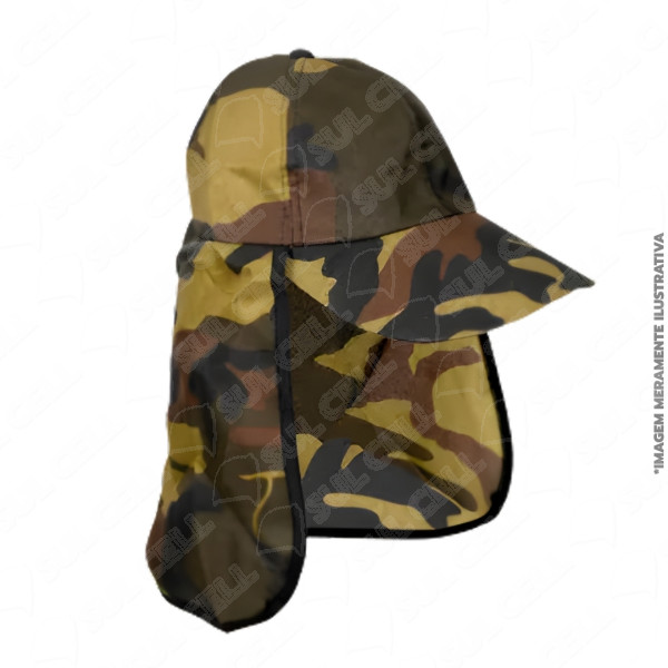 | Nome | Bone c/ Proteçao de Pescoço Poliester - Camuflado Preto Caqui |