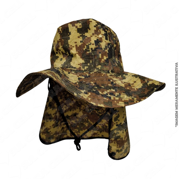 | Nome | Chapeu de Pescador c/ Proteçao de Pescoço Poliester - Camuflado Preto Caqui |