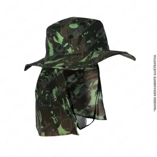 | Nome | Chapeu de Pescador c/ Proteçao de Pescoço Poliester - Camuflado Preto e Verde |