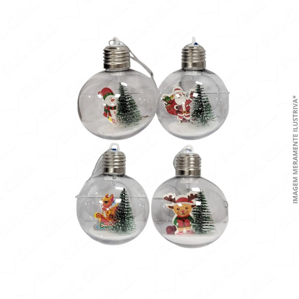 | Nome | Bola de Natal 8cm Led Figuras Natalinas c/ Neve (E72105) Sortido |