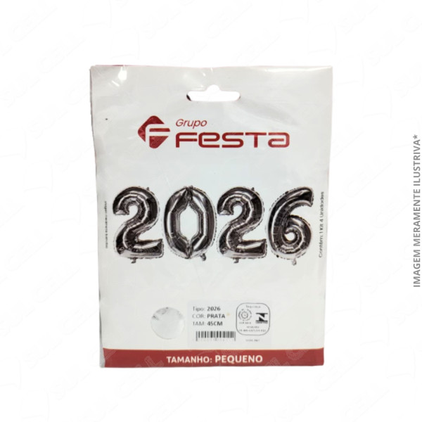 | Nome | Balao Metalizado 45cm 2026 p/ Decoraçao (100411) - Prata |