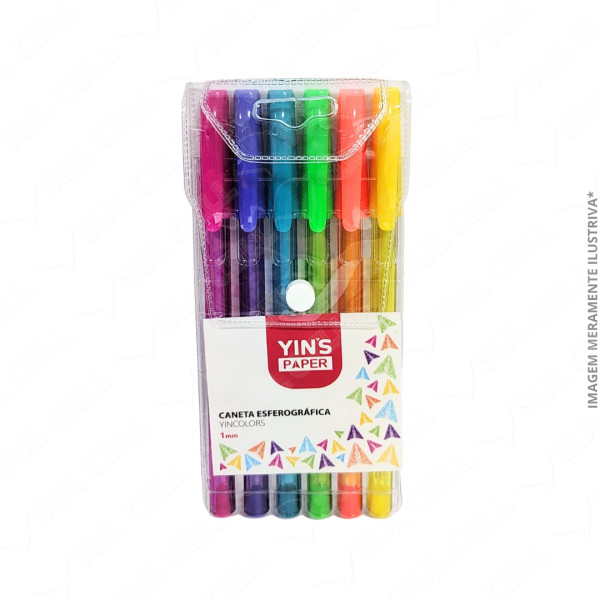 | Nome | Caneta Esferografica Yincolors 1.0mm Ponta Media Kit c/ 6 Cores (YP8652) |
