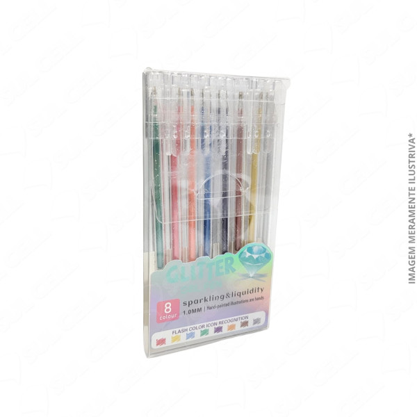 | Nome | Caneta Gel 1.0mm c/ Glitter Estojo c/ 8 Cores (AL-K88) |