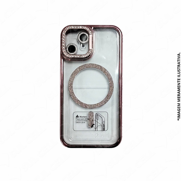 Capa Case Magsafe c/ Protetor de Lente e Suporte Strass iPhone 12 Col 391