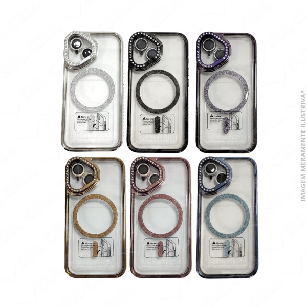 Capa Case Magsafe c/Protetor de Lente e Suporte Strass iPhone 16 Pro Col 391 está disponível somente na quantidade mínima de 1 itens