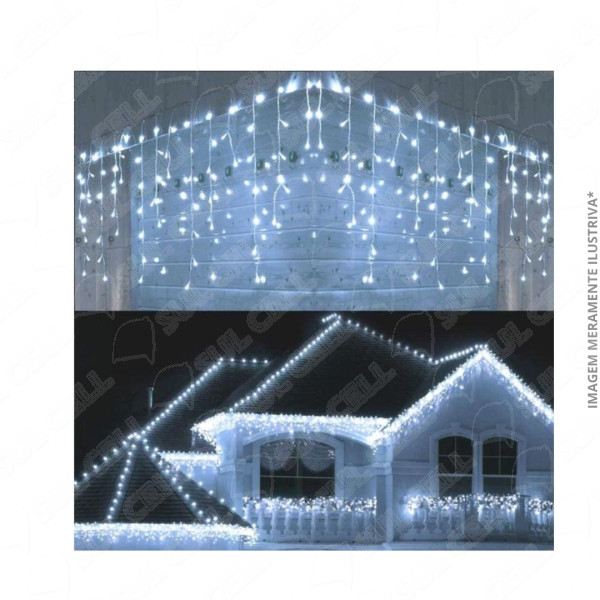| Nome | Cascata Led 8.8W c/ 400 Leds Branco Frio Fixa 10m x 0.70m - 220V (SD-3201) |