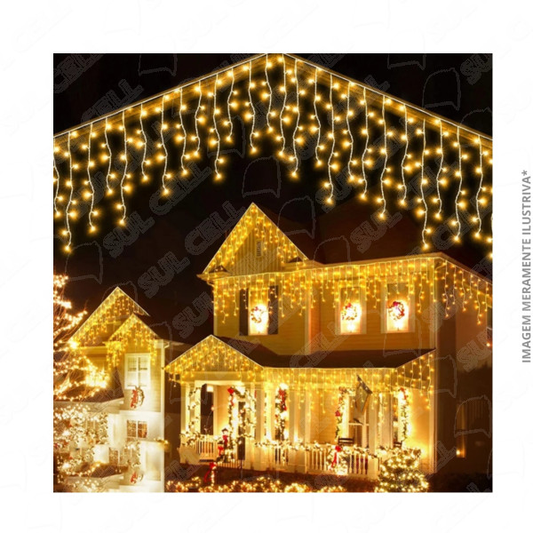 | Nome | Cascata Led 8.8W c/ 400 Leds Branco Quente Fixa 10m x 0.70m - 220V (SD-3202) |