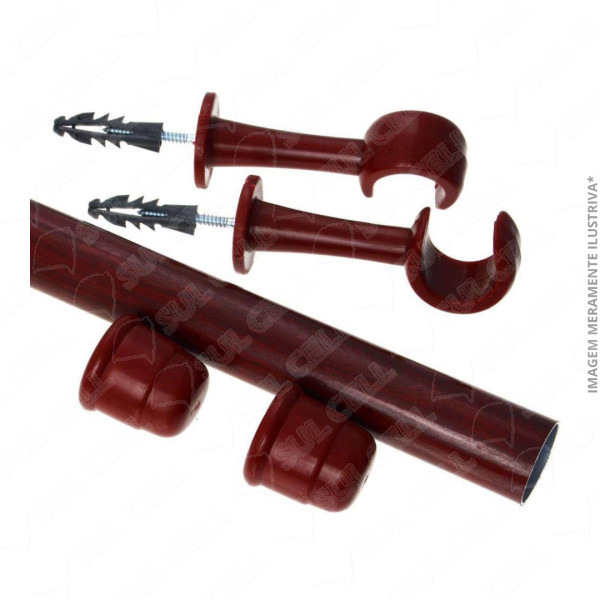 Conjunto Varao Simples p/ Cortina 28mm x 2,5m (801150095) Mogno