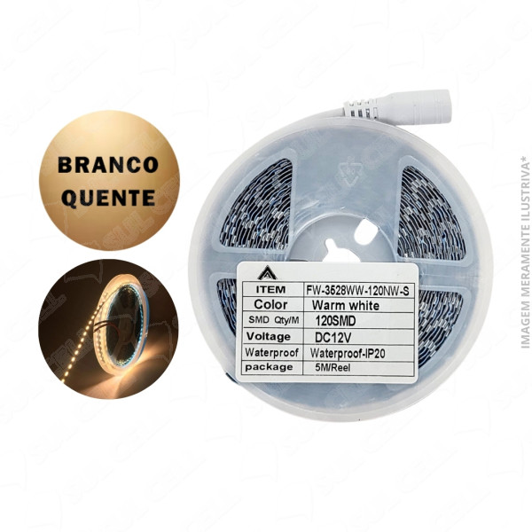 Fita de Led 3528 Mini Smd 120 Slim 12v Branco Quente 3000k 5m(FW-3528WW-120NW-S) está disponível somente na quantidade mínima de 1 itens