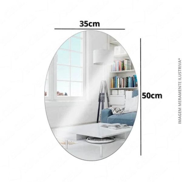 | Nome | Espelho Oval Auto Adesivo Decorativo 35cm x 50cm (BM-F1542) |