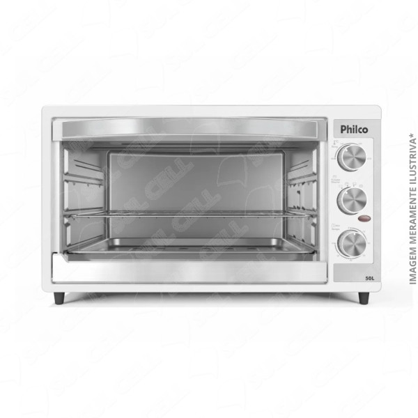 Capacidade: 50L • Potência 1500W (127V) Potência 2000W (220V) Botão seletor de temperatura de 100 a 230 graus Botão seletor de funções: aquecimento superior, inferior, superior e inferior Botão Timer de 60 minutos com sinal sonoro Luz indicadora de funcionamento Acompanha grelha inox deslizante.