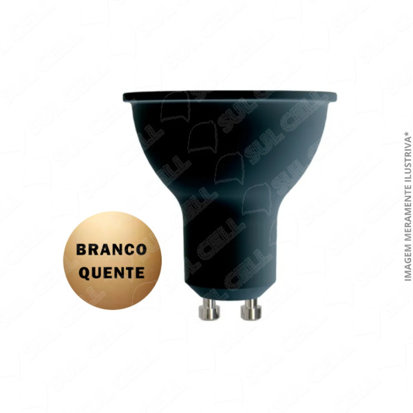 | Nome | Lampada Led Dicroica MR16 4,8w Bocal GU10 Branco Quente 2700K Bivolt - Preto |