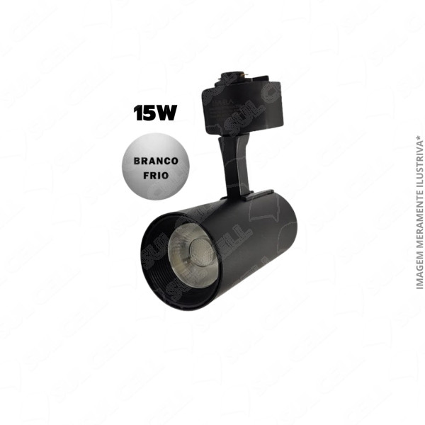 Luminaria Spot Led p/ Trilho 15w Branco Frio 6500k - Bivolt (65S815B) - Preto