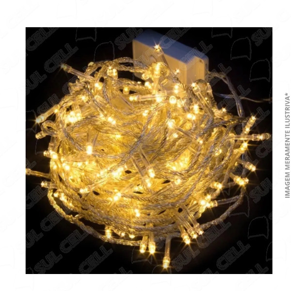 | Nome | Pisca Pisca Led 5w c/ 100 Leds 8F Branco Quente Fio Transparente 9m 220V(PIS225) |