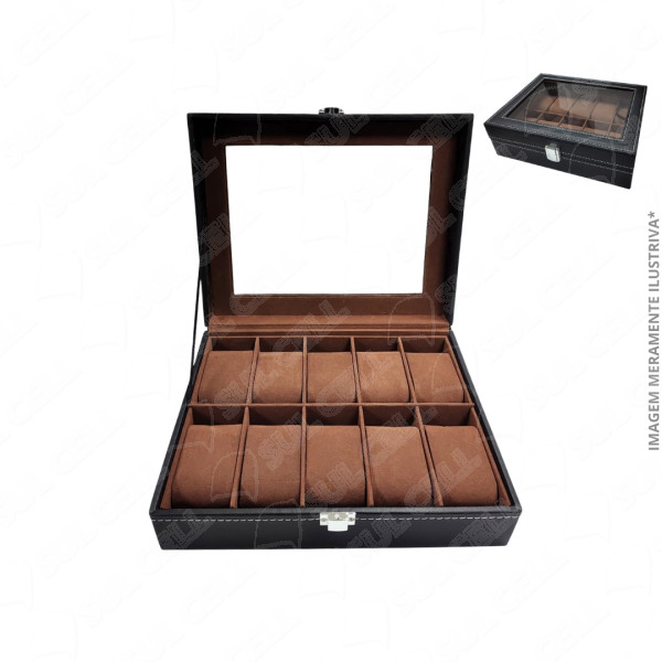 | Nome | Porta Relogio Maleta c/ 10 Divisoria 25cm x 20cm (KA-7443) - Preto |