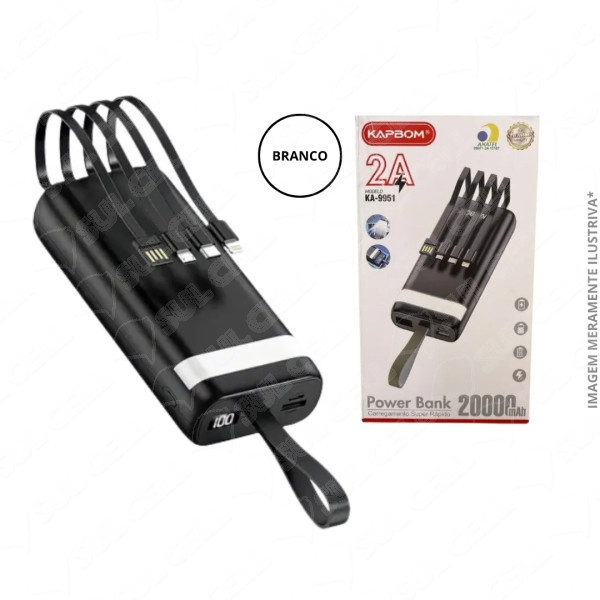 | Nome | Power Bank Carregador Portatil 20000mAh c/ Cabo v8 Tipo C Iphone (KA-9951) |