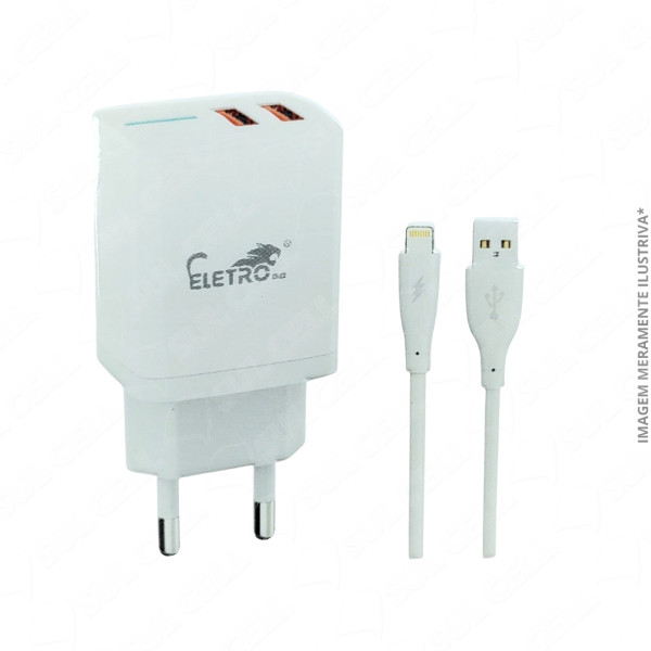| Nome | Carregador de Tomada 5v 5.1A Usb Duplo c/ Cabo Removivel Iphone (EL-4018-I5) |