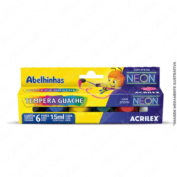 | Nome | Tinta Tempera Guache Neon 15ml c/ 6 Und (01006) - Acrilex |